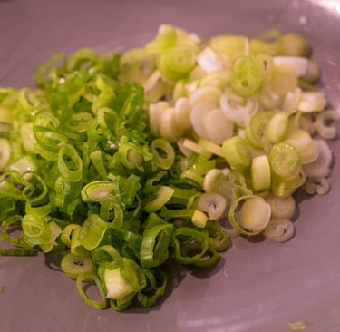 Toss in the white parts of the green onion. Let them sizzle and get fragrant for about a minute.