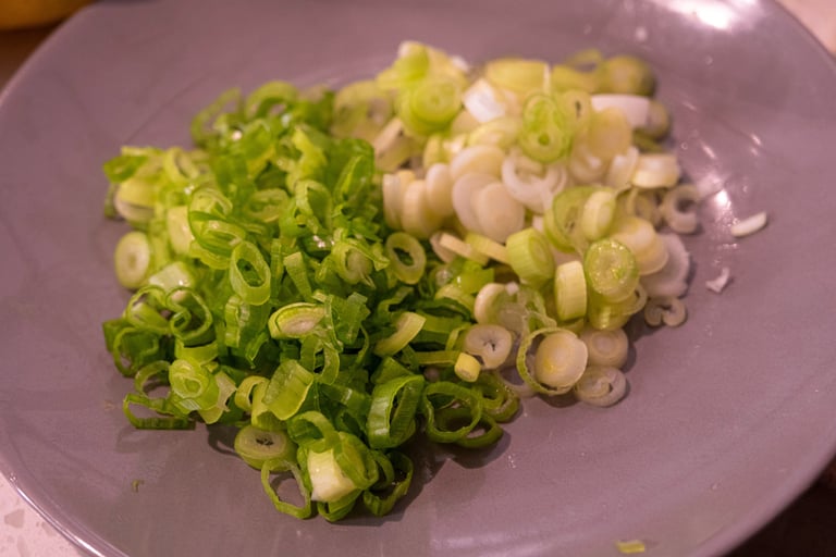 Once it’s evenly mixed, turn off the heat and stir in the green parts of the green onion for a fresh pop of color and taste.