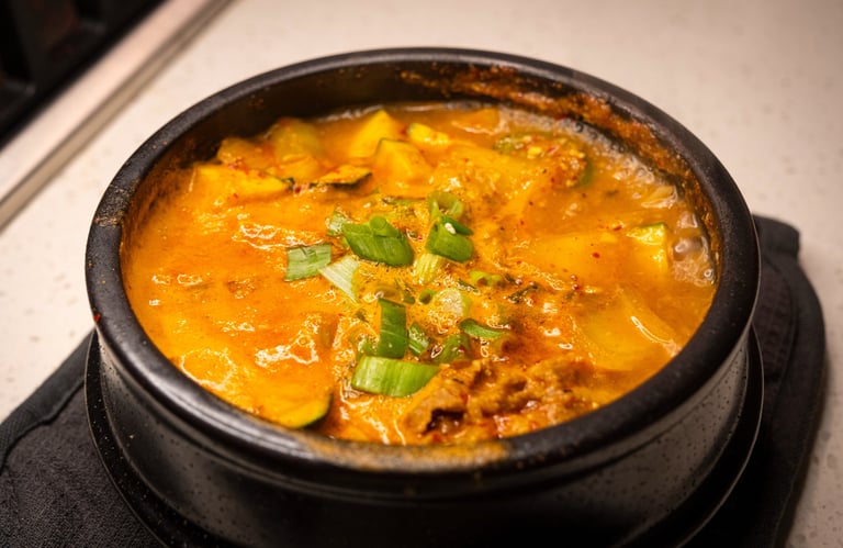 A deeply comforting and nutritious Korean stew made with fermented soybean paste, tender brisket, and fresh vegetables.